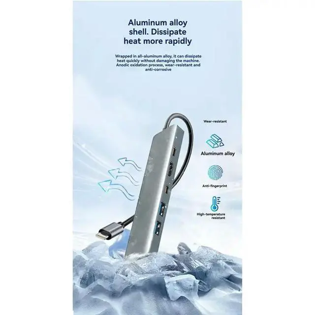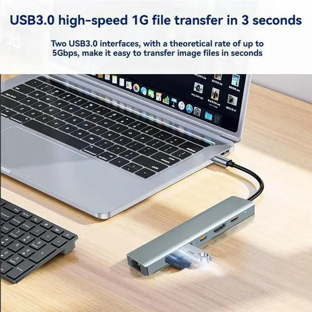 • Type C To 4K HDTV USB 3.0 6-In-1 USB C Hub PD 100W Charging Dock Gigabit Ethernet Adapter For TV Mouse Keyboard