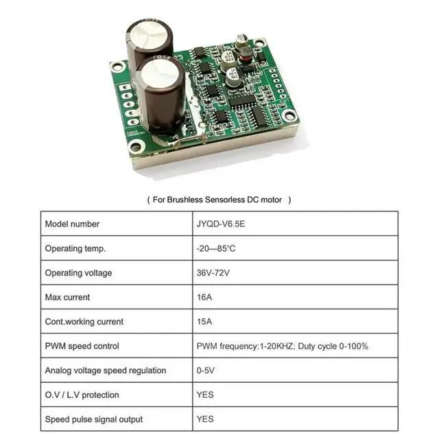• JYQD-V6.5E 36V-72V BLDC Motor Driver Board 16A For 3-Phase Motor PWM/0-5V Speed Control Sensorless Brushless Controller