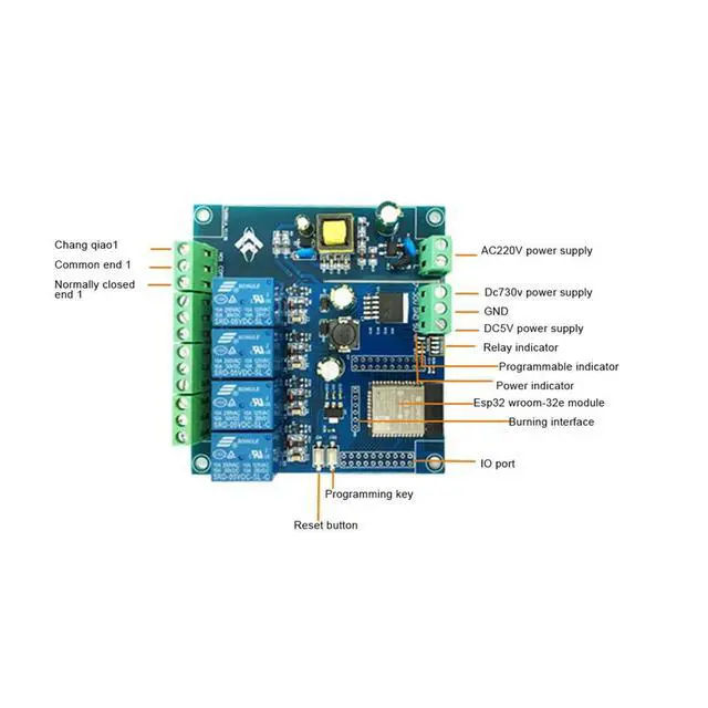 • AC 220V/DC 5-30V Power Supply ESP32 Bluetooth BLE Four-Way Relay Module ESP32-WROOM Development Board 1/O Port