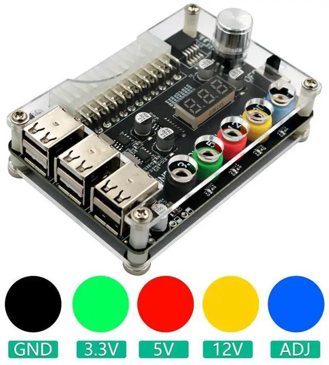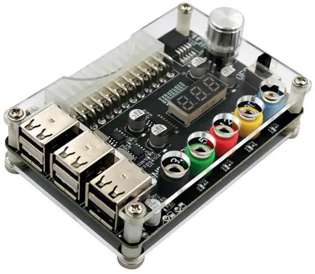 24Pin ATX Power Supply Breakout Board Power Module Adapter Connector Adjustable Voltage Knob 6 Port USB 2
