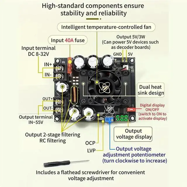 • For Audio Amplifier Compatible DC 8-32V 900W 30A DC-DC Boost Converter Module Adjustable Step Up Power Supply Voltage Regul