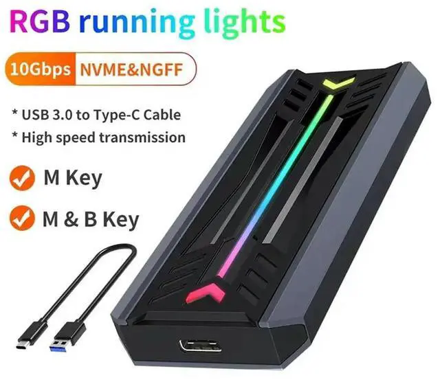 External Nvme M2 SSD Enclosure M. 2 NGFF NVME Dual Protocol Solid State Drive Case Supports M. 2 NGFF 2230/2242/2260/2280