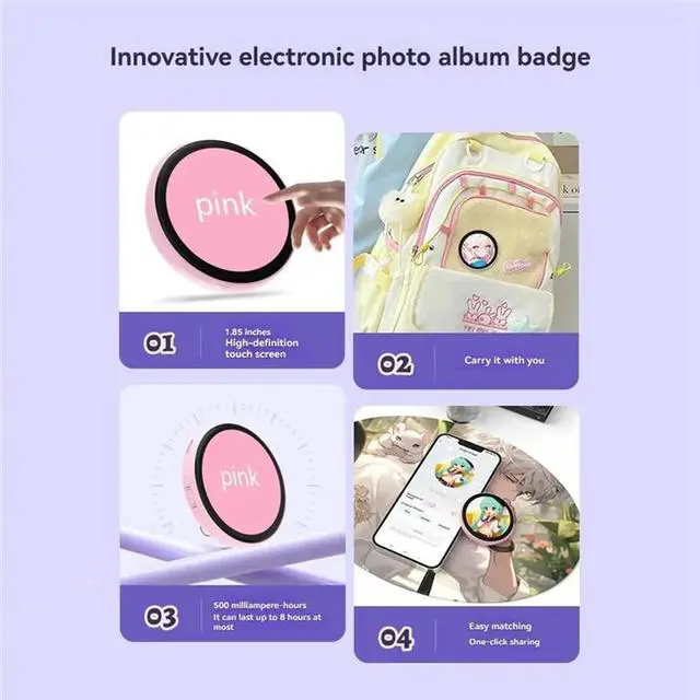 • Electronic Baji 1.85" Touch Screen LED Button Pin Cyber Dynamic Display Badge For Otaku Fan Collectible Gift