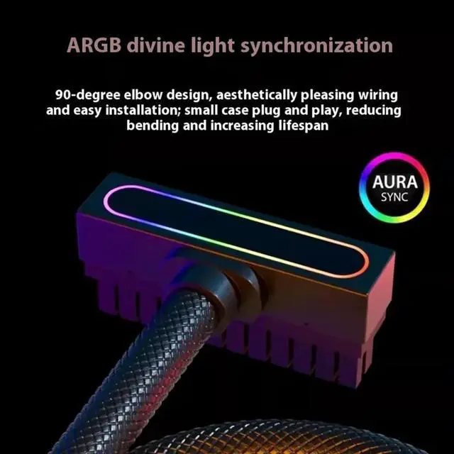 • ARGB SYNC One-Line Connection ATX24PIN Power Supply Extension Cable- Side Bend 90°, 30Cm Length For Computers Degree