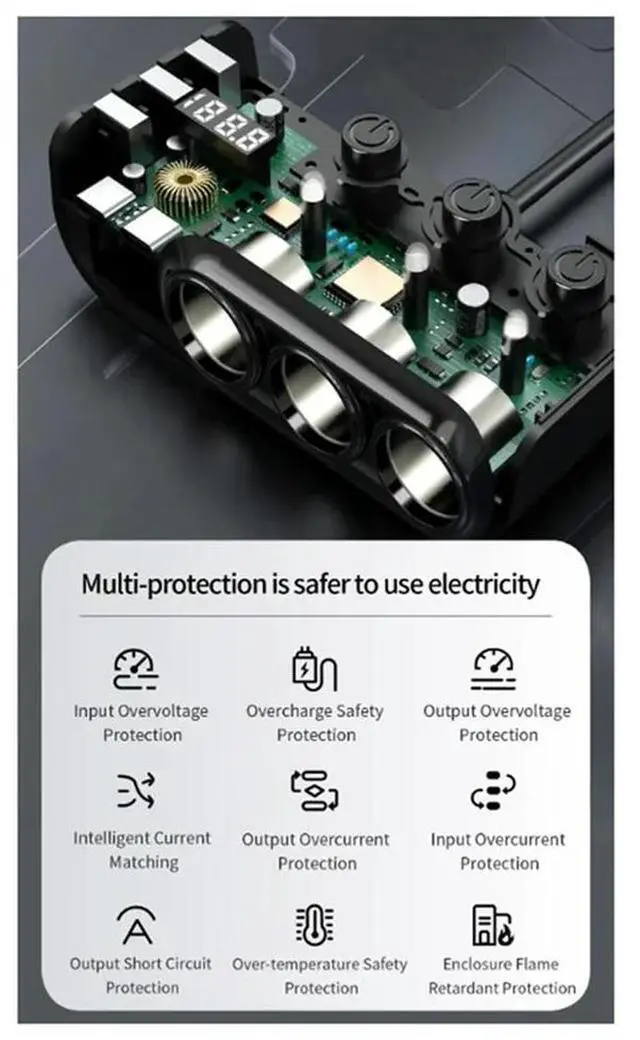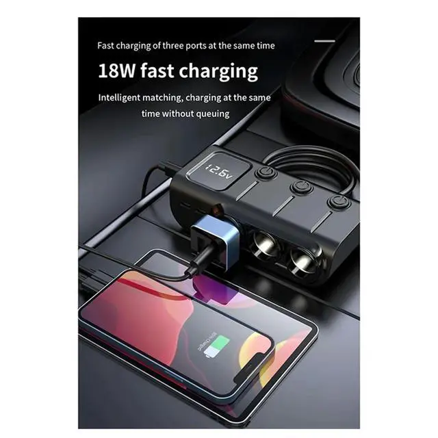 • Car Charger Socket Splitter 3 Type-C PD 36W 3 USB Fast Charging Switch 120W High Power Adapter Easy Install Easy To Use