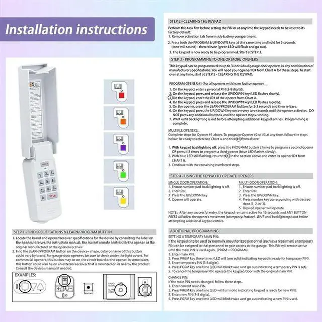 • GUK-R Universal Garage Door Opener Keypad, Compatible With For Genie, Overhead Door, Garage Door Openers Durable