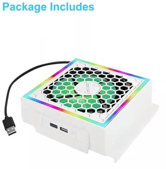 • LED Cooling Fan Atmosphere Light 3 Gears Fan Adjustable 5V 2.4A Console Fan 7 Lighting Modes Gaming Accessories