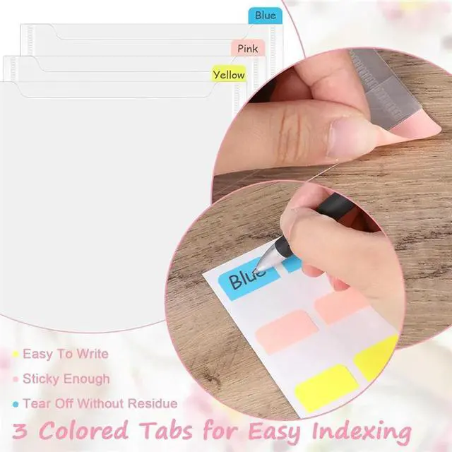 • Paper Organizer Clear Plastic Sleeves 120 Pcs Sticky Tabs Folder Holder Without Closure For Photos