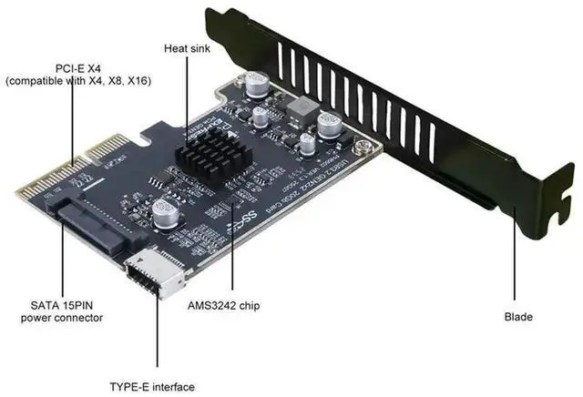 • For PCIE To Type-E Expansion Card For PCI Express X4 To Type-E USB 3.2 GEN2 20Gb Riser Board For PC Laptop Notebook Desktop