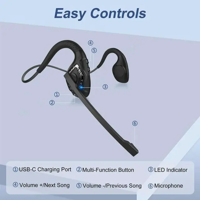 • Bluetooth Headset with Microphone,Open Ear Headphones Noise Cancelling Headset for Office Driving Work