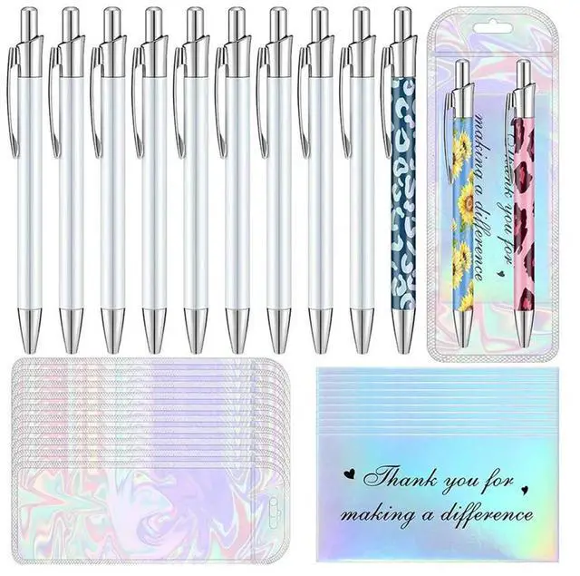 • 30 Piece Sublimation Pen Set With Reseale Bag And Holographic Thank You Card Office School Stationery Supplies