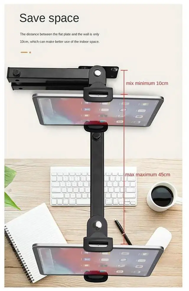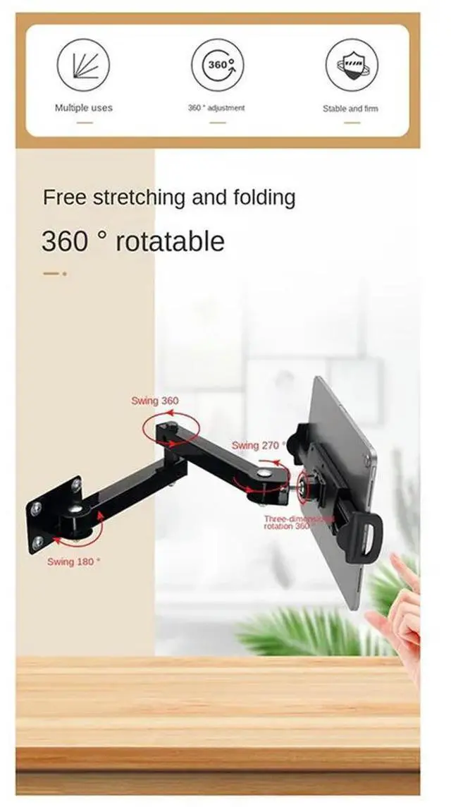 • Wall Mount Tablet Stand Adjustable Long Arm Stretchable Cell Phone Stand For 4-13 Inches
