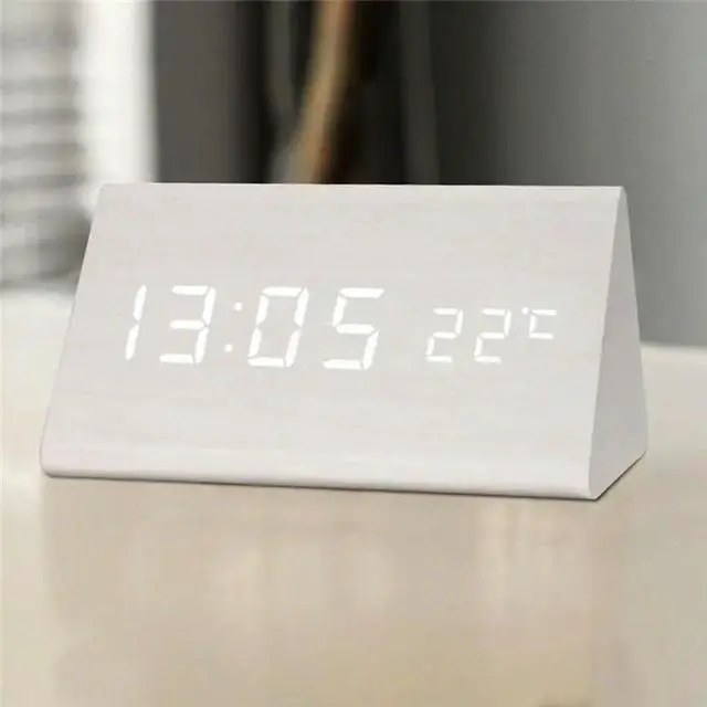 • Digital Clock Wooden Sound Control LED Alarm Clock With Temperature USB Desktop Clocks Snooze