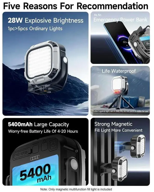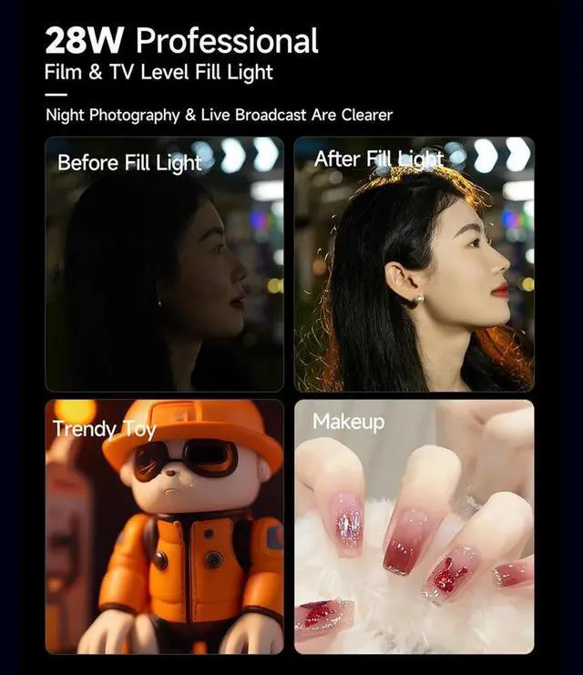 • Fill Light 28W Magnetic LED Video Light Camera Light Red Light Handle 2700K-6500K Cold Shoe for Video