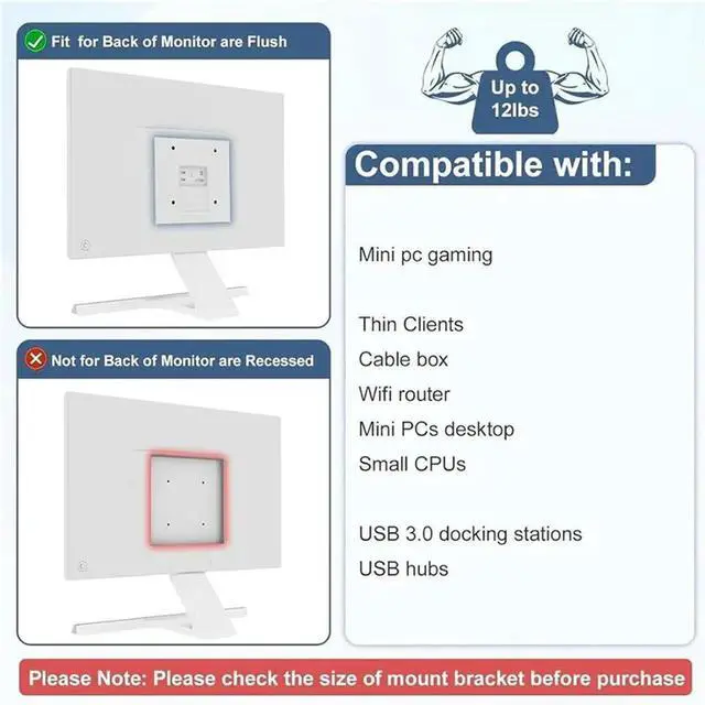 • Easy Installation Small PC Mount Computer Holder Gaming Desk Adapter Monitor Bracket