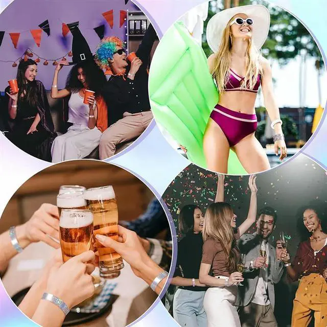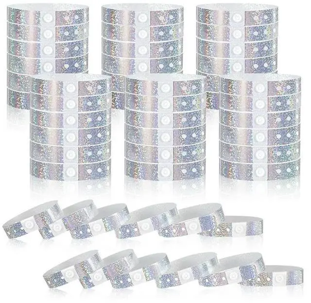 • Adjustable 300 Pcs Holographic Plastic For Events Party Wristbands, 3/5" X 9.84" Waterproof Design Band