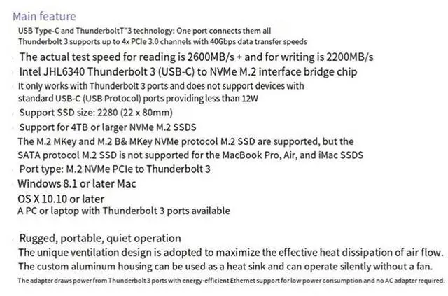• Usb Type-C Thunderbolt 3 Tom.2 Nvme SSD Hard Drive Enclosure 40Gbps Supports M.2 M Key Andm.2 B & Mkey Nvme