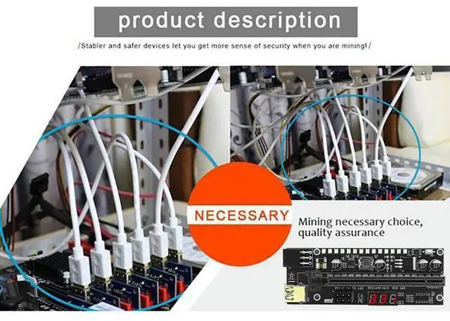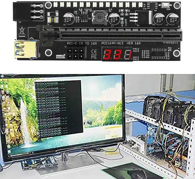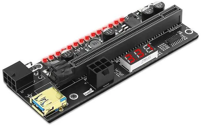 • PCIE Riser 1X To 16X Graphic Extension Card With 3.3V Digital Meter Display And 3528 Colorful LED For BTC Mining