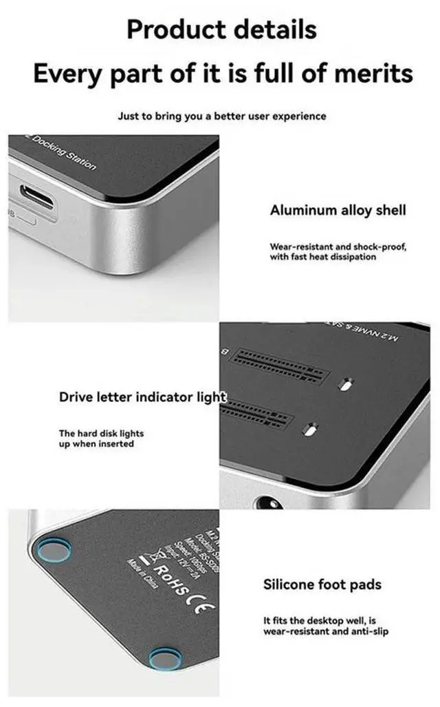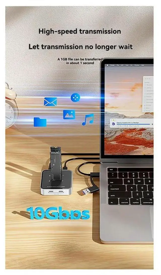 • Solid State Drive Box Dual Disk M. 2 Dual Protocol, Hard Disk Seat TYPE-C HUB Expansion 10Gbps
