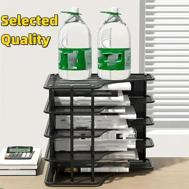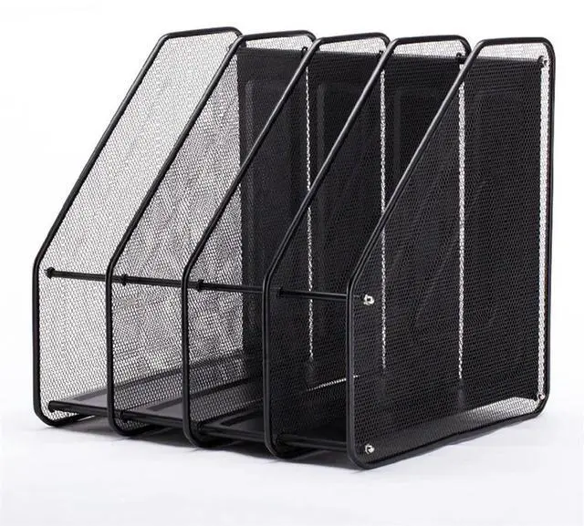 Quadruple-Column l Iron Mesh File Rack Desktop File Box Bookshelf Data Rack Four-Grid Multi-Layer