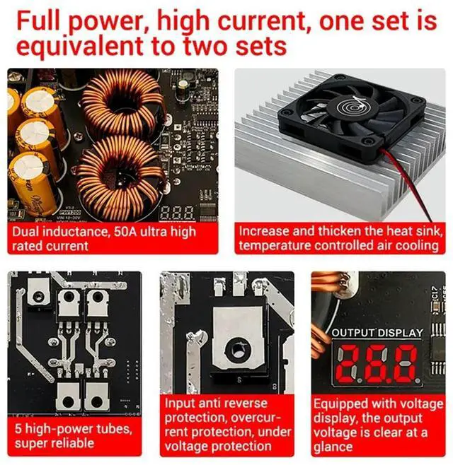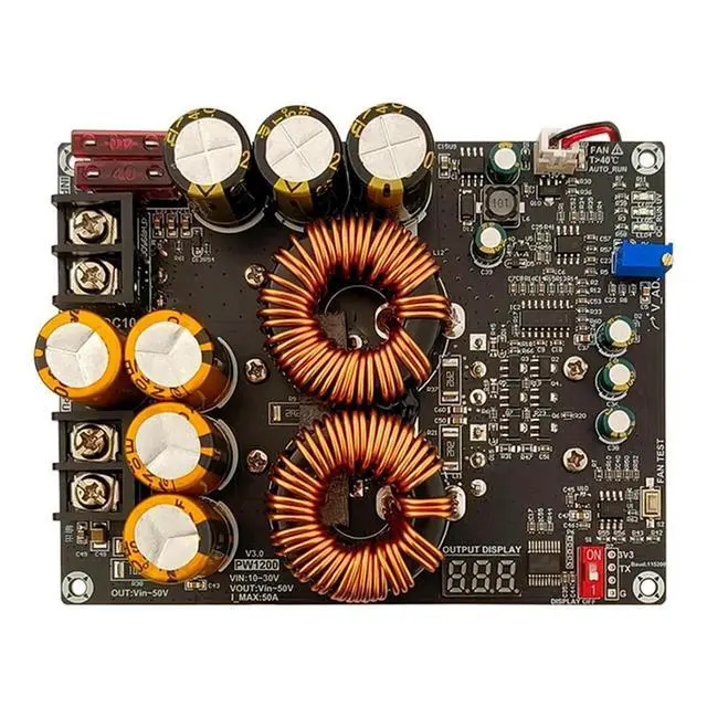 DC-DC Boost Converter Current Boost Power Module 1200W 50A Dual Inductor 10-30V To Vin-50V Adjustable Voltage Charger