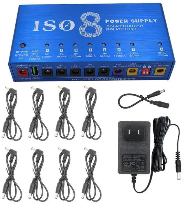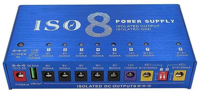 For Multi-Effect Guitar Pedal Power Supply ISO-8 8 Isolated DC Output Ports (Auto Voltage Detection) 9V 12V 18V For Pedals