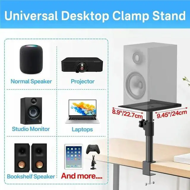 • Desktop Speaker Stand Adjustable Height Clamp Mount For Studio-Grade Platform For Studio Monitors Computer Speakers