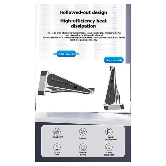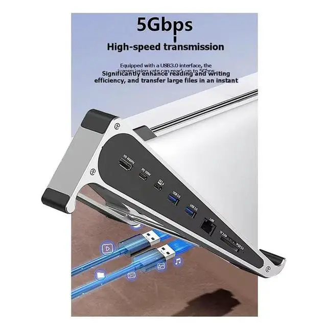 • Aluminum Stand 7 Port Laptop Hub Adapter USB-C Type C Network Card MST HDTV DP 4K 60Hz Docking Station