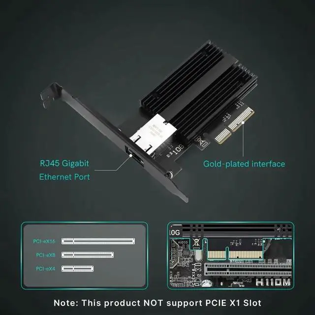 • 10Gbps AQC113 PCIE To RJ45 Network Card 1G/2.5G/5G/10Gbps RJ45 Interface Ethernet Wired LAN Adapter For Desktop Win10/11-A77P