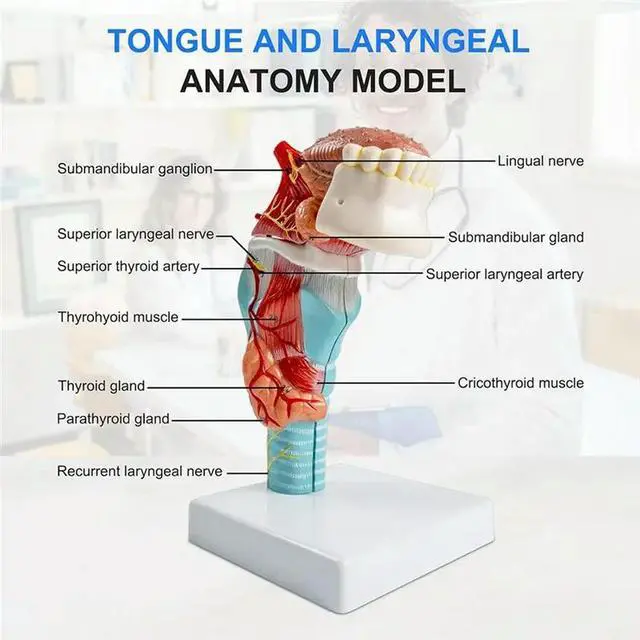 • Tongue Teeth Toothy Anatomy Model, Life-Size Human Tongue-Throat Model Including Thyroid Gland Larynx
