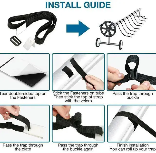 • Swimming Pool Cover Reel Set Spool Pool Solar Cover Roller Attachment Strap Clip Kit Swimming Pool Accessories