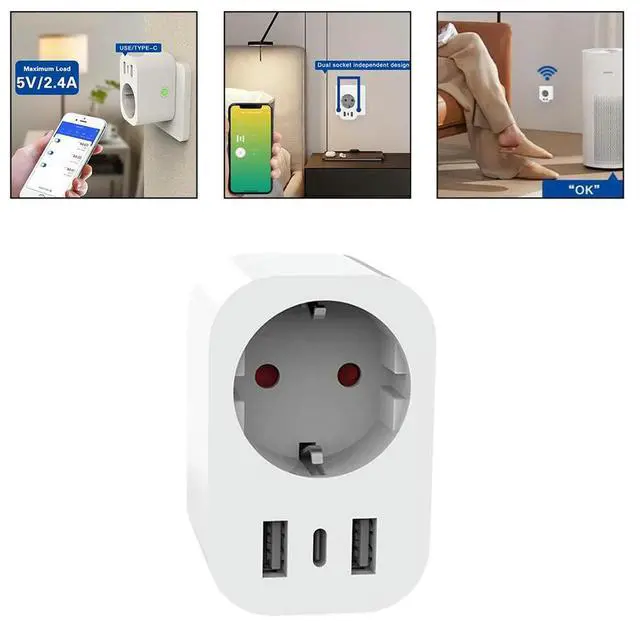 • For Tuya Socket 16A With Type C Charger Port Timer Switch APP Control For Home Improvement Tool Accessory
