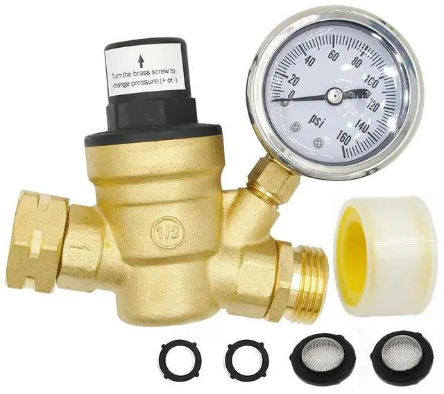 • Water Pressure Regulator Brass Adjustable Pressure Reducer With 0-160 PSI Gauge For Electrical Equipment Tool Accessory