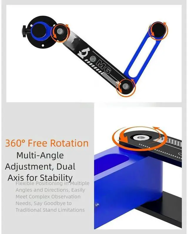 • M6 Microscope Dual Positioning Swing Arm Bracket 360 Degree Rotation Heavy Duty For Test Measurement Tool Accessory