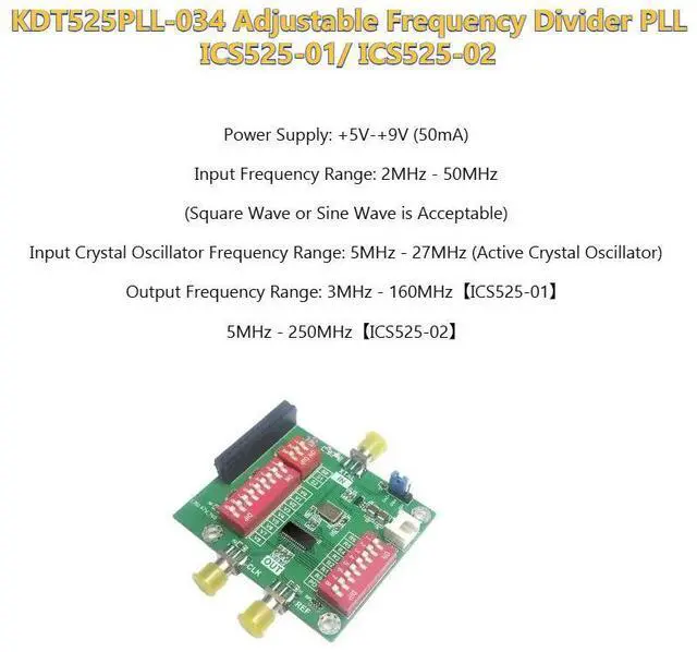 ICS525 Phase-locked Loop Module, Hardware Adjustable PLL Wideband Phase-locked Loop, Frequency Output KDT525PLL-034