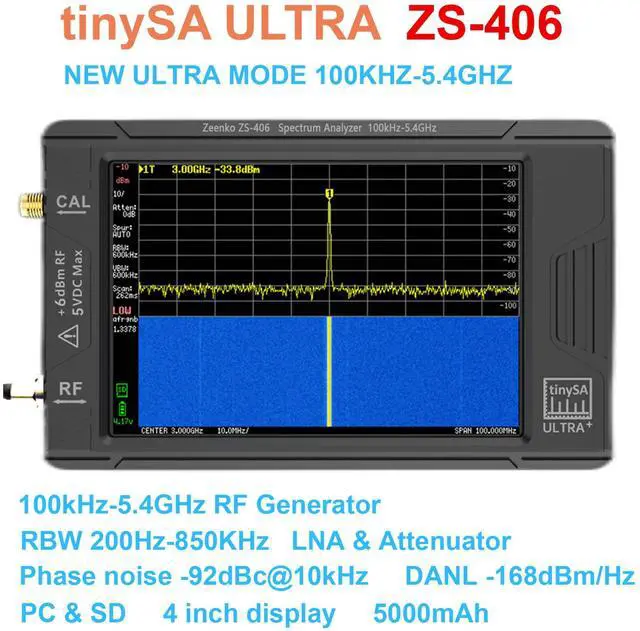 ZS-406 Hand held tiny Spectrum analyzer tinySA ULTRA PLUS 4" display 5000mAh 900MHz- 5.4GH z