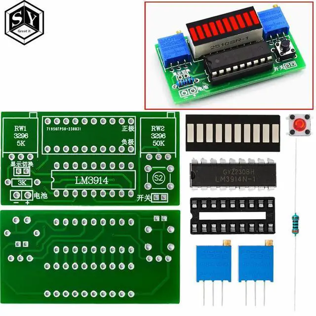 • LM3914 10 Segment 3.7V Lithium 12V Capacity Indicator Module Power Level Tester LED Display Electronic DIY Kits