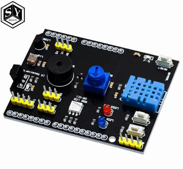 • DHT11 LM35 Temperature Humidity Sensor Multifunction Expansion Board Adapter For UNO R3 RGB LED IR Receiver Buzzer I2C