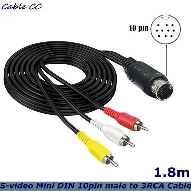 1.8m S-Video Mini DIN 10Pin male to 3RCA male Cable For H25, C31, C41, C51, C61K, and C41 Televisions, Monitors, Audio and Video