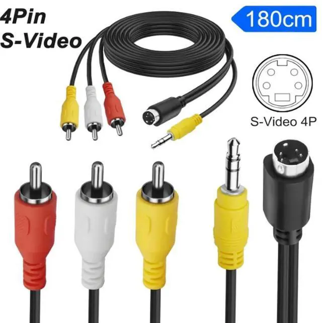 • S-Video 4 Pin to 3 RCA AV Composite Cable with 3.5mm TRS Plug, (1/8 inch) TRS Male Stereo Audio Video Cable PC to TV (1.8M)