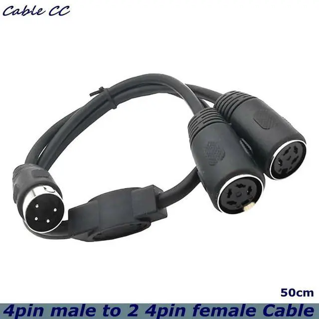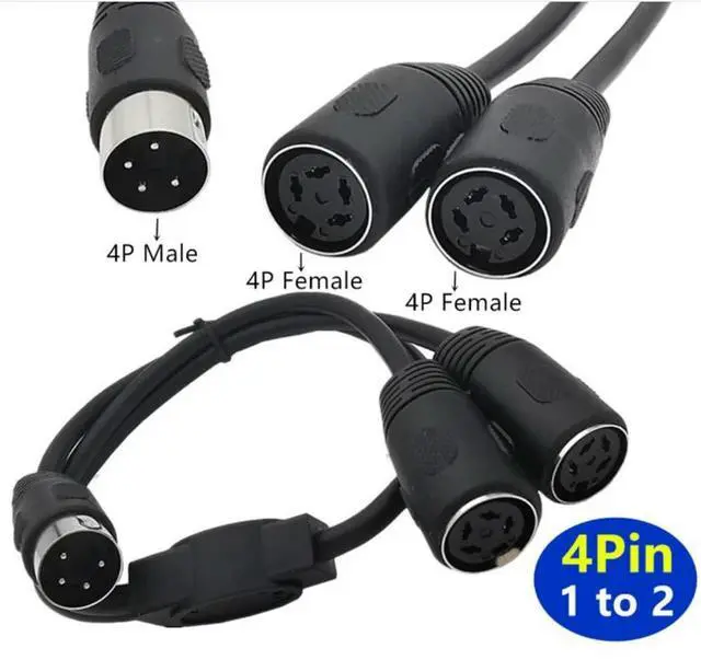 • 50cm DIN 4-pin Male to Dual 4-pin Female Audio and Video Cable S-terminal Midi 4-pin for Keyboards and Medical Equipment