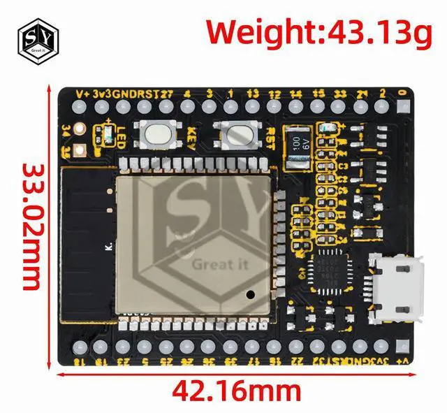 • PY-ESP32 MCU IoT Module (ESP32-WR-00M-32) | MicroPython Compatible, +BT+BLE, 3.6V-6V Micro-USB
