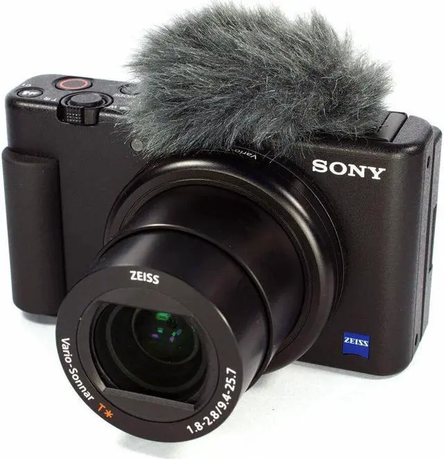 Despite its sleek and lightweight design, the ZV-1 is also characterized by its large right-hand grip that is ideal for one-handed recording in conjunction with a front tally lamp, larger REC button on the top plate, and a Multi Interface Shoe for attaching accessories. An impressive ZEISS 24-70mm-equivalent standard zoom lens, with a bright f/1.8-2.8 maximum aperture range, is also featured and, suiting recording while walking, Active SteadyShot image stabilization helps to steady footage and reduce the appearance of camera shake for smoother takes.