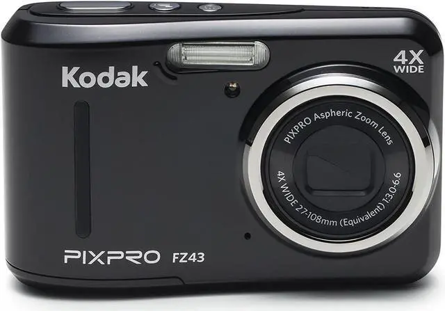 Kodak PIXPRO FZ43 Friendly Zoom Digital Camera Compact, intuitive and so easy to use, the Kodak PIXPRO FZ43 Digital Camera is the perfect camera to take anywhere you go. It features One-touch video, red-eye removal, face detection and AA batteries. Make moments into memories with the Kodak PIXPRO FZ43 Digital Camera. 27mm Wide Angle Lens Why limit yourself to standing back to get the whole gang in the shot? With a 27mm wide-angle lens, the FZ43 means you don't have to. It gives you plenty of space to work with for all your friends.
