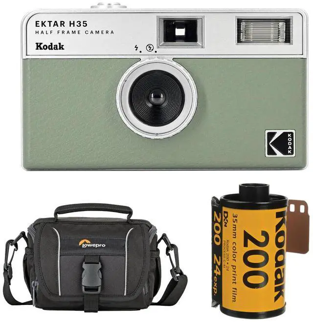The camera's Sage color, a subtle grayish-green, adds a playful touch and is sure to inspire you to take it outdoors for nature shots. This bundle also includes a roll of Kodacolor Gold 200 35mm Color Negative Roll Film with 24 exposures and a handy shoulder bag, providing everything you need to start your photographic journey.
