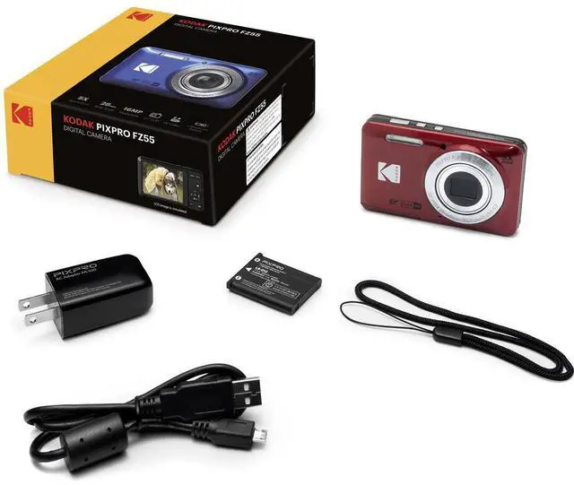 Meet the FZ55, Friendly Zoom from the new KODAK PIXPRO collection of digital cameras. This compact point and shoot is a step up model with rechargeable lithium-ion battery. One-touch HD video, 28mm wide-angle lens and a host of features and shooting modes let you express your inner creativity.