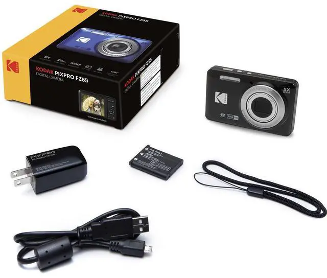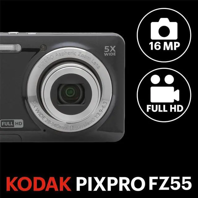 Meet the FZ55, Friendly Zoom from the new KODAK PIXPRO collection of digital cameras. This compact point and shoot is a step up model with rechargeable lithium-ion battery. One-touch HD video, 28mm wide-angle lens and a host of features and shooting modes let you express your inner creativity.
