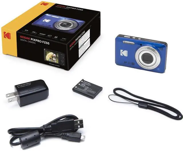 Meet the FZ55, Friendly Zoom from the new KODAK PIXPRO collection of digital cameras. This compact point and shoot is a step up model with rechargeable lithium-ion battery. One-touch HD video, 28mm wide-angle lens and a host of features and shooting modes let you express your inner creativity.