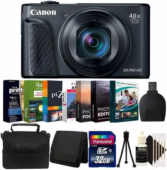 Few things will be too far away for the black PowerShot SX740 HS Digital Camera from Canon. Boasting a 20.3MP CMOS sensor and 40x optical zoom, this all-in-one point-and-shoot can capture things near and far. Helping the far end of its 24-960mm zoom range (35mm equivalent) is optical image stabilization which keeps your photos sharp and in focus. Zoom Framing Assistant makes it easier to track subjects at the long end of the focal length by quickly zooming out and then back in at the press of a button once you've located your subject. Canon's DIGIC 8 Image Processor helps the camera keep up with your shooting, allowing for 10-fps continuous shooting with AF lock on.