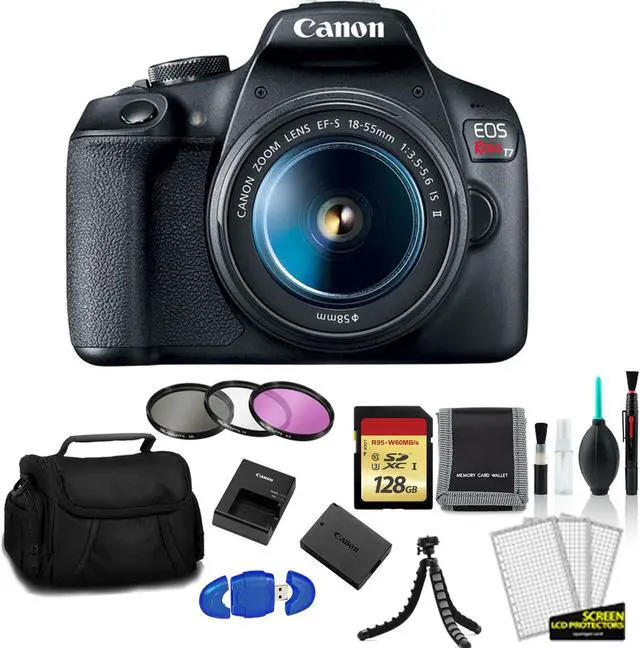 Compact and capable, the Canon EOS Rebel T7 is a sleek entry-level DSLR featuring versatile imaging capabilities and a helpful feature-set. Incorporating a 24.1MP APS-C CMOS sensor and DIGIC 4+ image processor, the T7 produces high-resolution stills with notable clarity, reduced noise, and a flexible native sensitivity range from ISO 100-6400 for working in a variety of lighting conditions. The sensor and processor also afford shooting continuously at up to 3 fps for photographing moving subjects, as well as Full HD 1080/30p video recording.